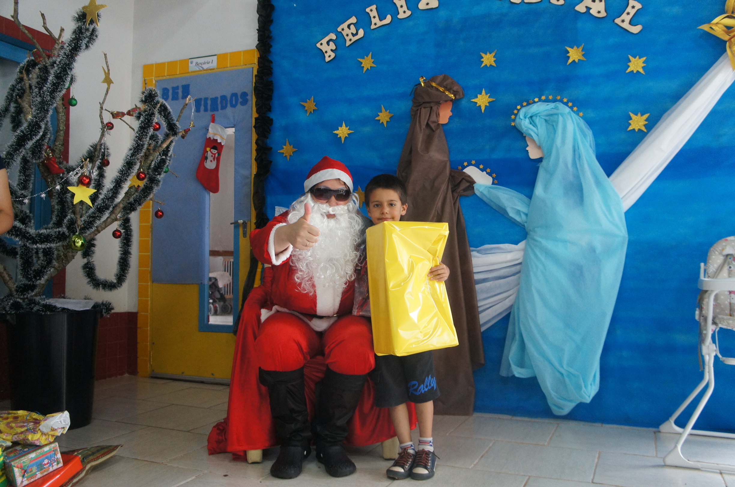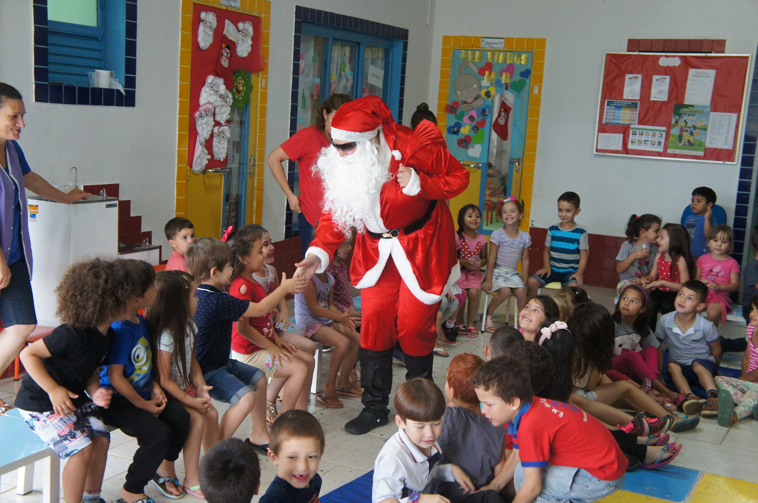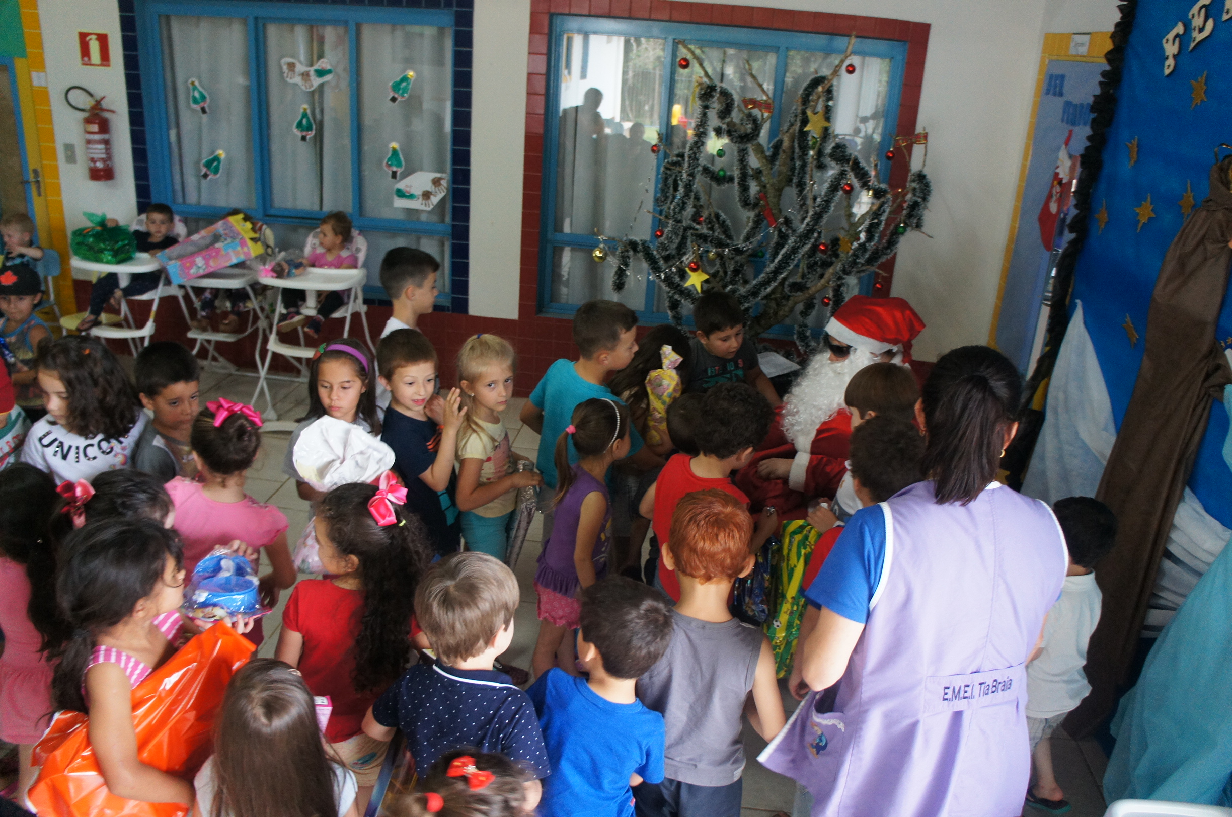 A tarde de quinta-feira (12/12) foi de festa para as crianças da Escola Municipal de Educação Infantil Tia Braia. Eles receberam uma visita antecipada do Papai Noel, que além do clima de Natal, levou muitos presentes e mensagens de boas festas.