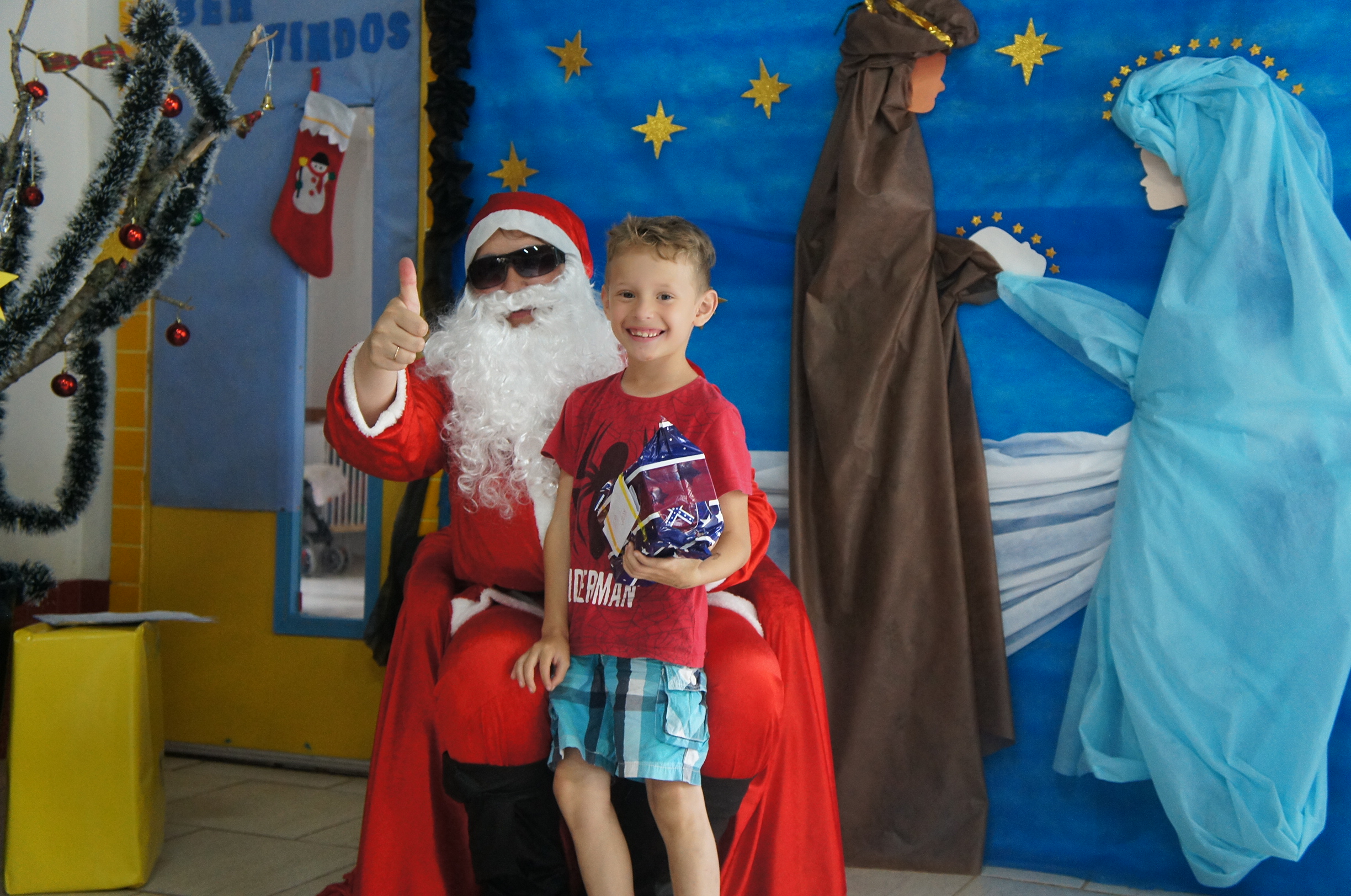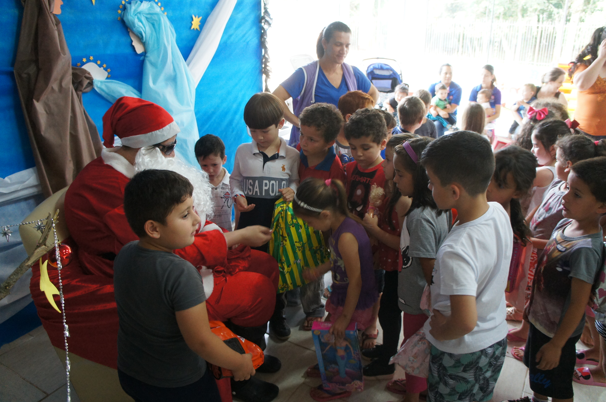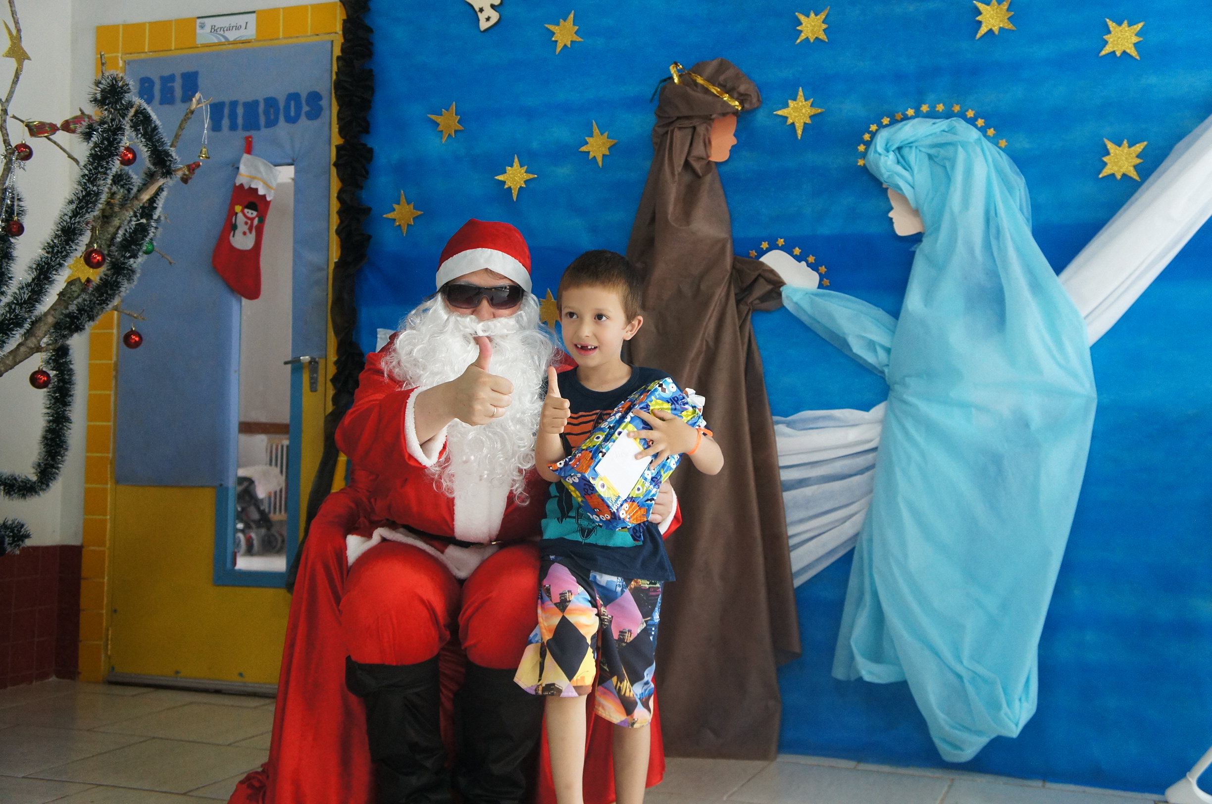 A tarde de quinta-feira (12/12) foi de festa para as crianças da Escola Municipal de Educação Infantil Tia Braia. Eles receberam uma visita antecipada do Papai Noel, que além do clima de Natal, levou muitos presentes e mensagens de boas festas.