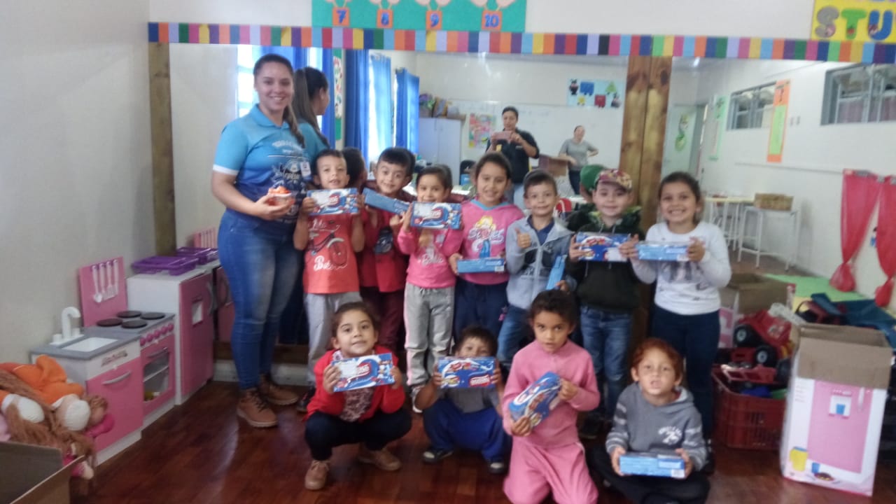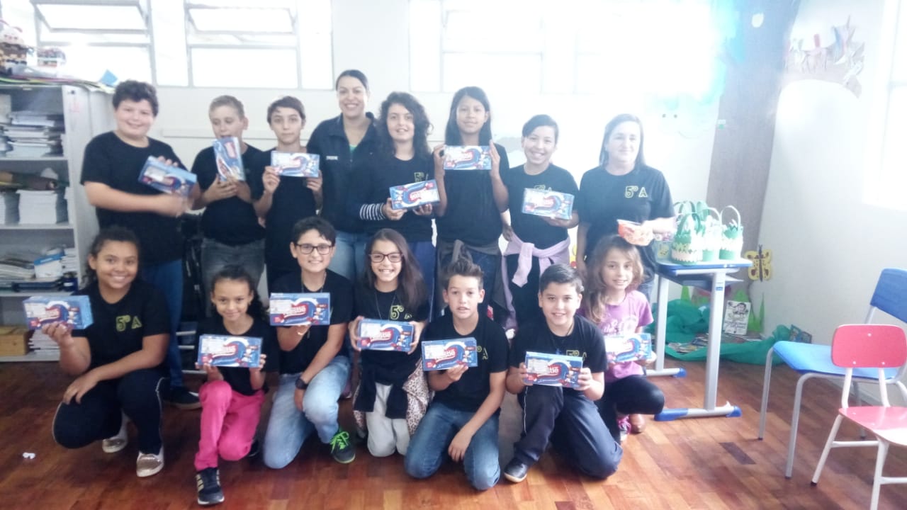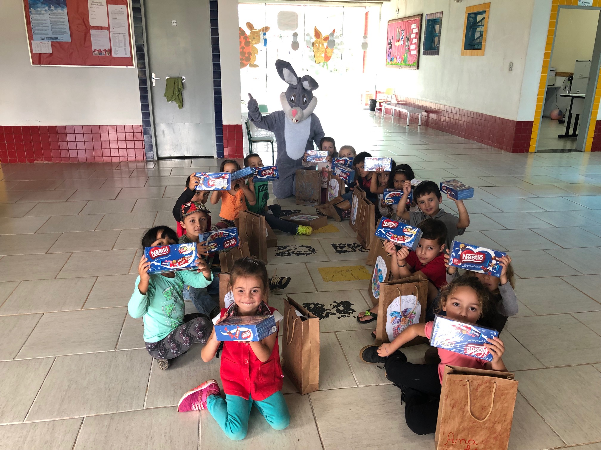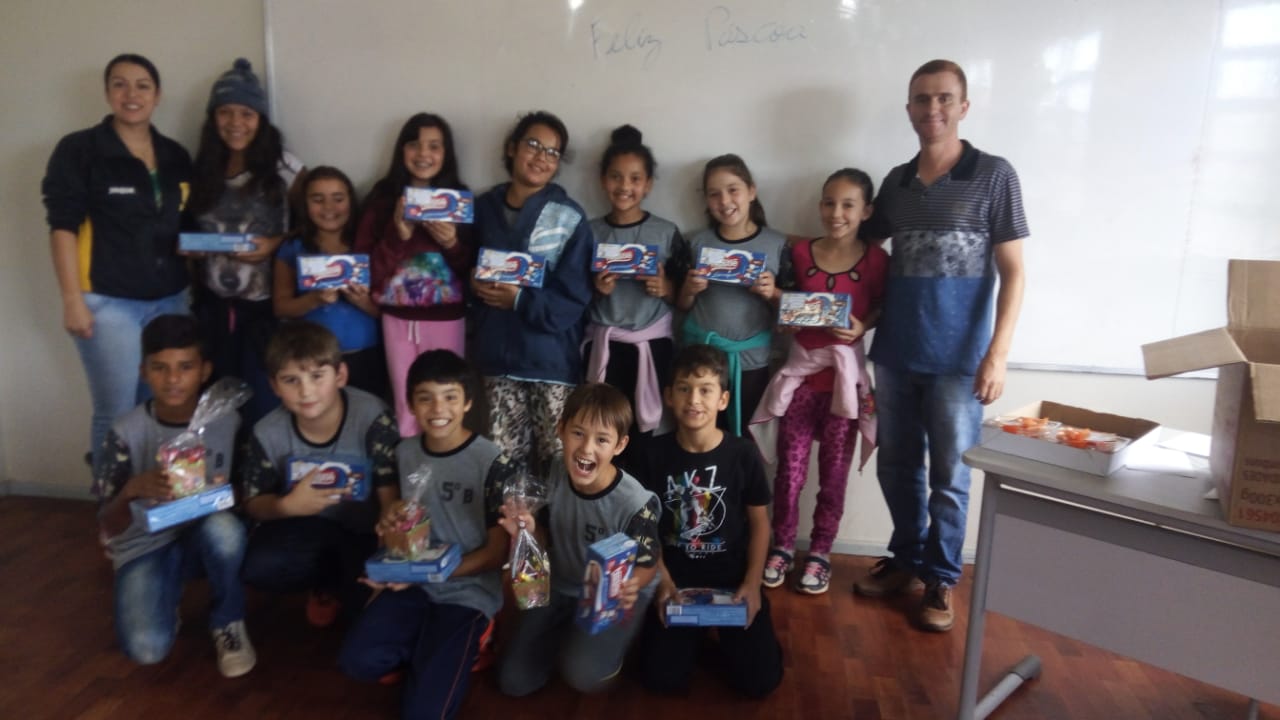 Os alunos das escolas Tadeu Silveira e Princesa Isabel também receberam caixas de chocolate.
