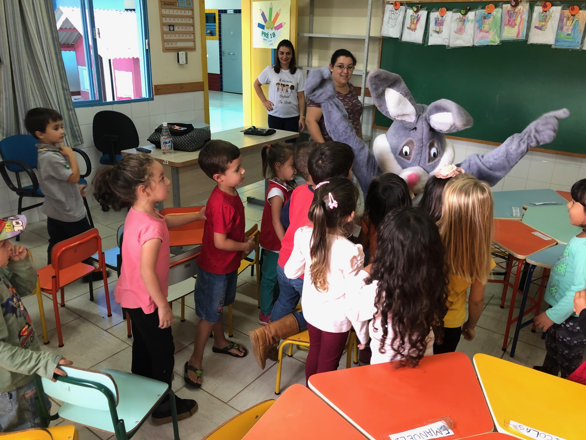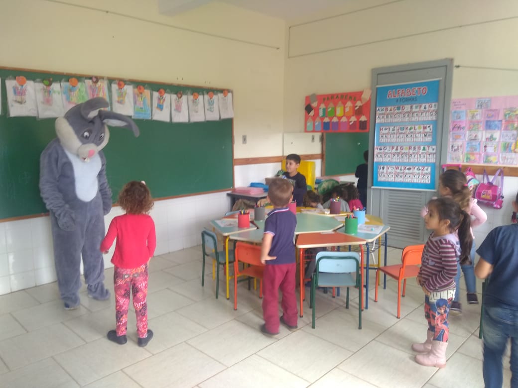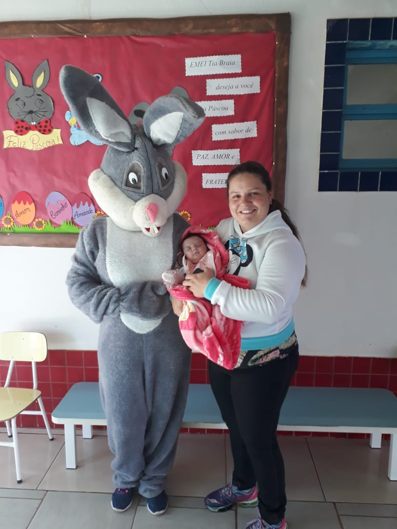 O coelho da Páscoa antecipou a data comemorativa na tarde desta terça-feira (16/04), na EMEI Tia Braia. As crianças tiveram de encontrar os chocolates que o coelho havia escondido e ainda contaram com a presença de três coelhinhos de verdade.