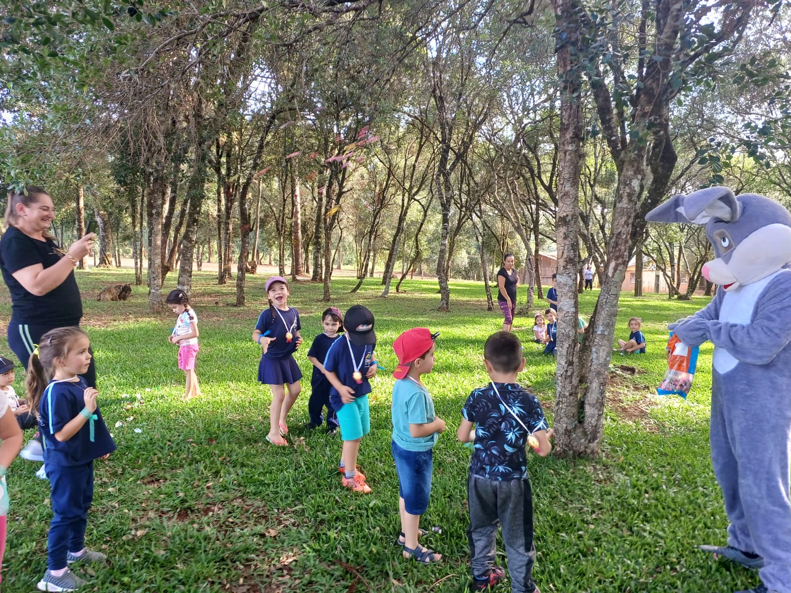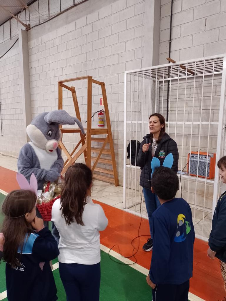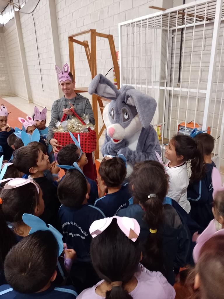 Na EMEI Tia Braia, as atividades começaram na tarde da quarta-feira (05/04), no Parque de Eventos João Ferreira dos Santos, com uma gincana de Páscoa e a caça aos ovos com a presença do coelho. A EMEB Professor Tadeu Silveira realizou gincanas com os seus estudantes e professores no Ginásio de Esportes e entrega dos ovos de Páscoa na quinta-feira (06/04). A EMEF Princesa Isabel, na Serra dos Gregorios, também realizou atividades e brincadeiras com a presença do coelhinho.