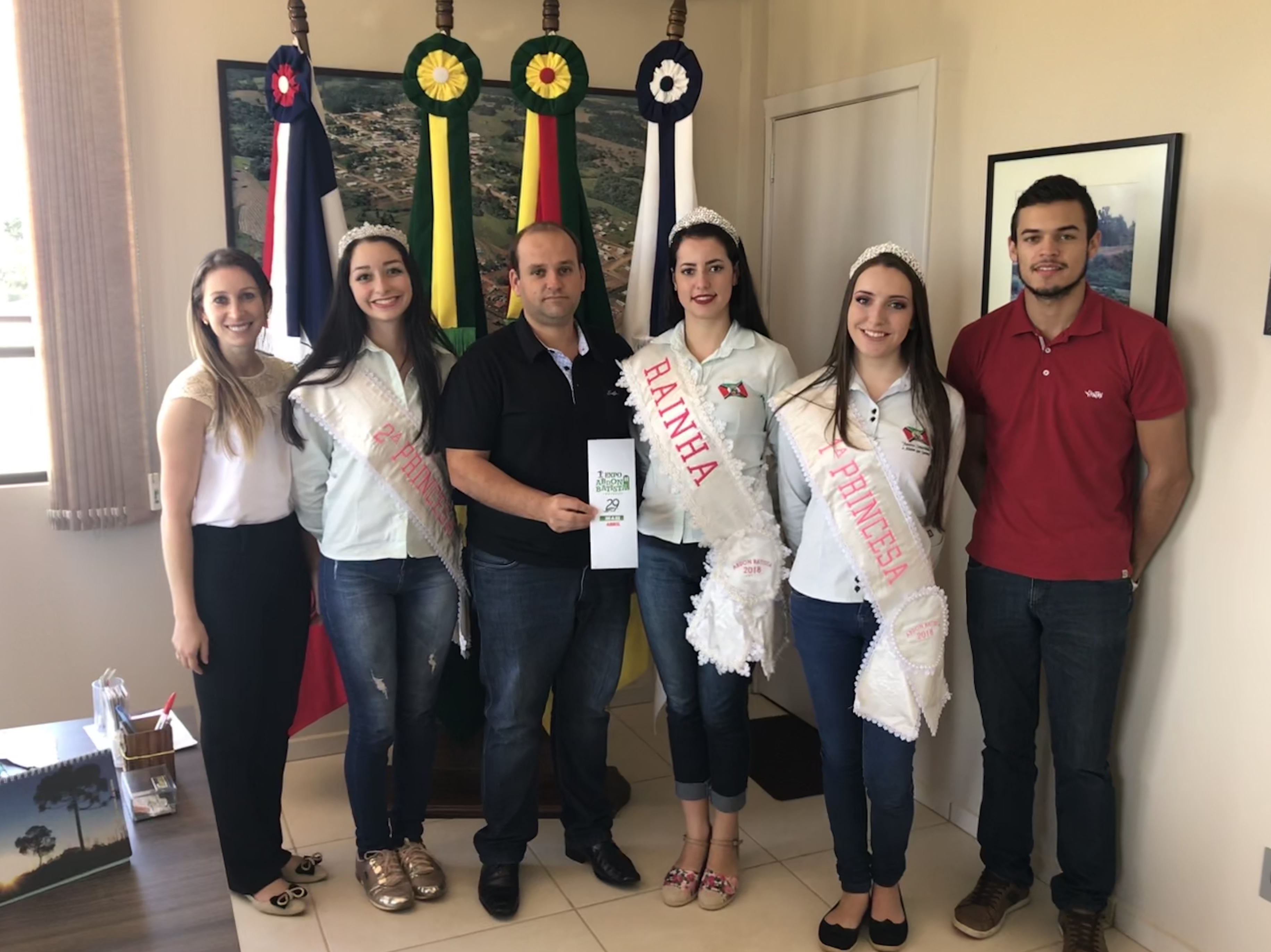 As soberanas da 1ª Expo Abdon estiveram no Município nesta quinta-feira (12/04), para convidar todos os pinhalenses para as festividades que acontecerão entre os dias 20 e 22 de abril em Abdon Batista/SC.