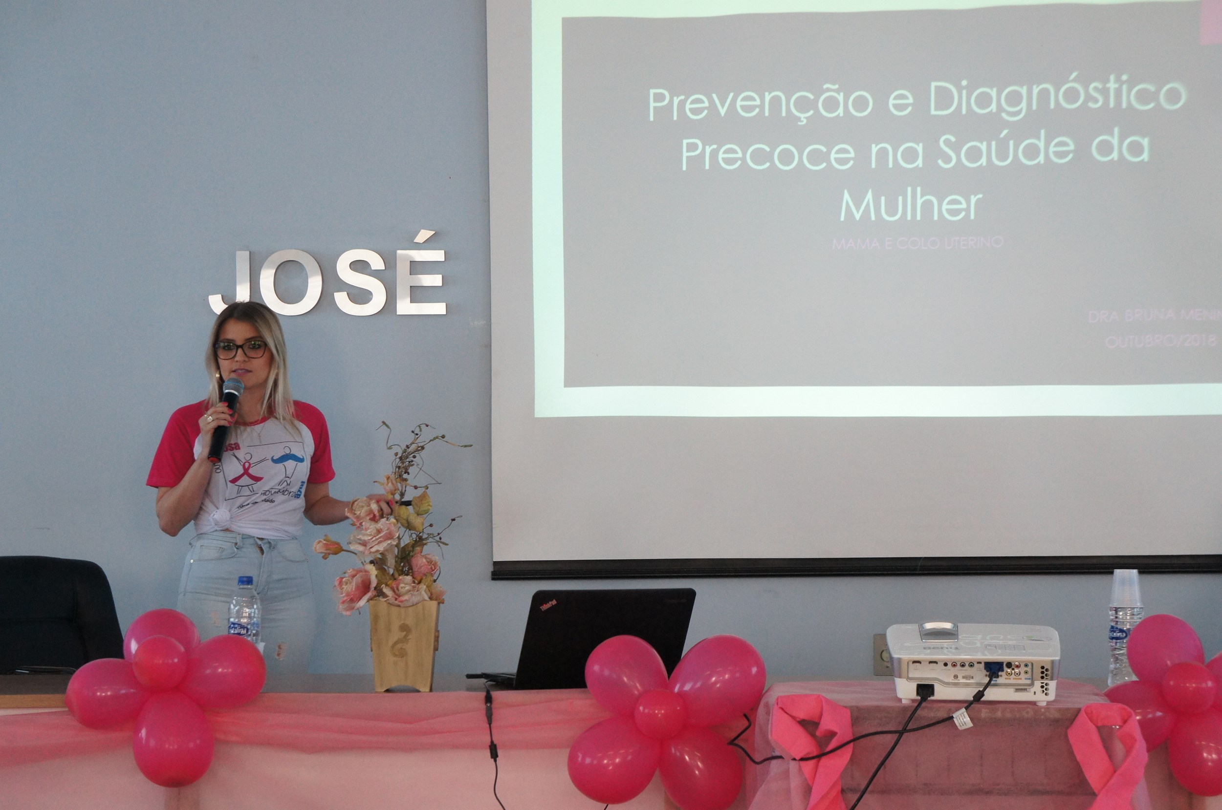A programação iniciou com a médica Bruna Menin falando sobre Prevenção e Diagnóstico Precoce na Saúde da Mulher, transmitindo orientações importantes quanto a investigação de doenças que acometem as mulheres, principalmente o câncer de mama e o câncer de colo de útero.