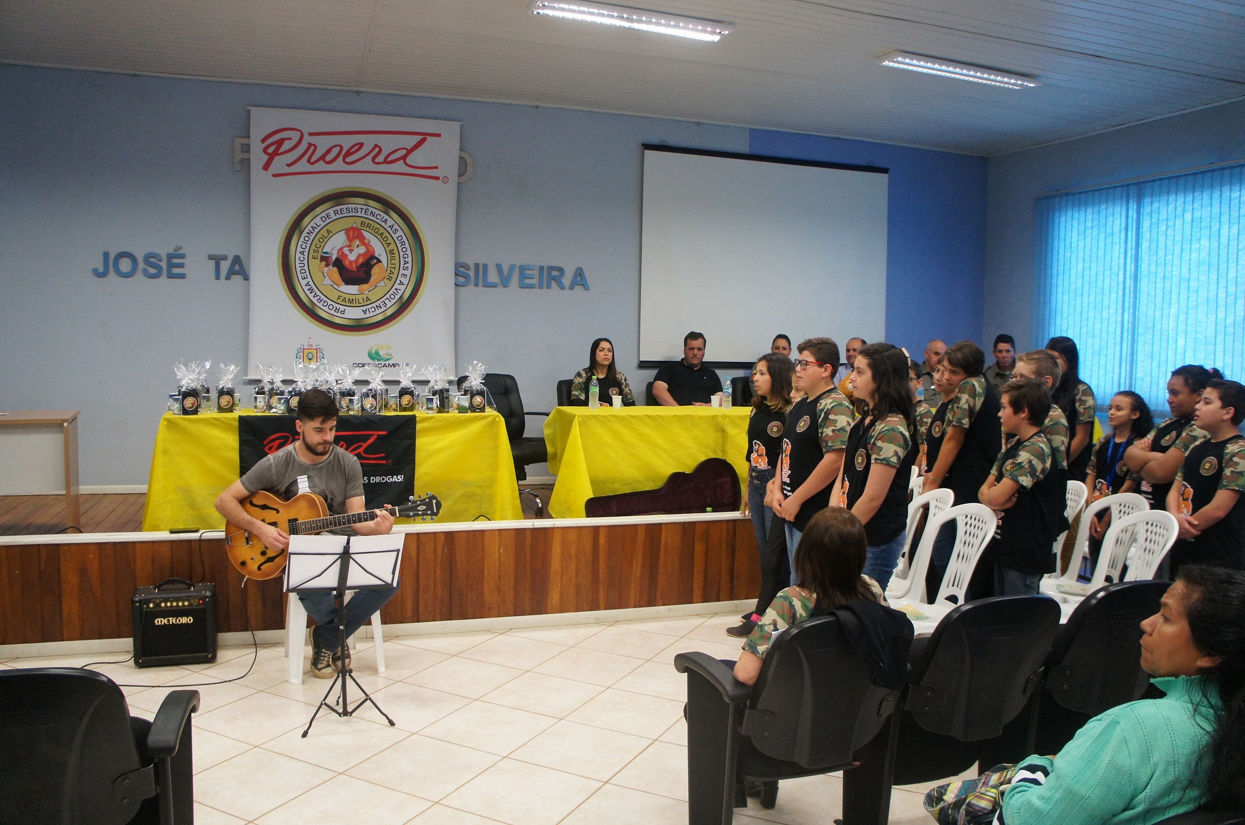 Na tarde da última terça-feira (05/11), a Brigada Militar com o apoio da Prefeitura de Pinhal da Serra, realizou a cerimônia de formatura da primeira turma do Programa Educacional de Resistência às Drogas (Proerd) para os alunos dos 5º Anos A e B da EMEB Professor Tadeu Silveira, na Câmara de Vereadores.