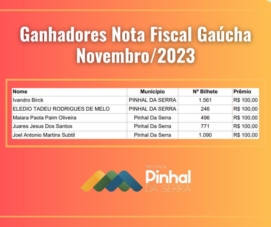 Em Pinhal da Serra, o programa Nota Fiscal Gaúcha foi introduzido e é trabalhado nas escolas locais, onde os estudantes aprendem sobre o Programa de Integração Tributária (PIT), Educação Fiscal, Cidadania e a importância dos tributos. Os vencedores podem ser conferidos na imagem disponível.