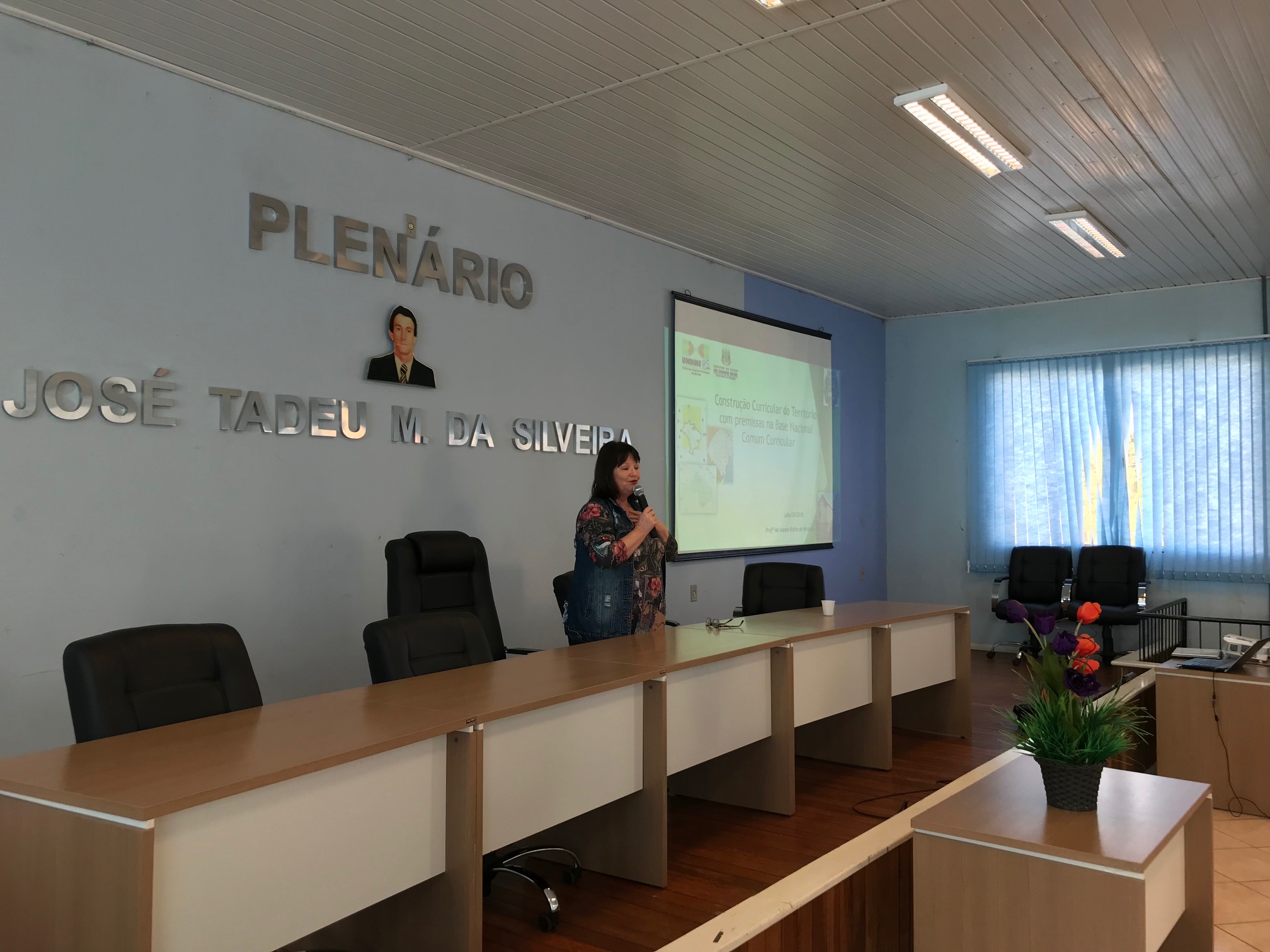 Os professores da Rede Municipal e Estadual de Ensino de Pinhal da Serra e a Educação Infantil do município de Esmeralda tiveram uma capacitação na útima semana, com o tema "Construção curricular do território com premissas na Base Nacional Comum Curricular (BNCC)", ministrado pela Prof. Ms. Ivanete Rocha de Miranda no turno da manhã.