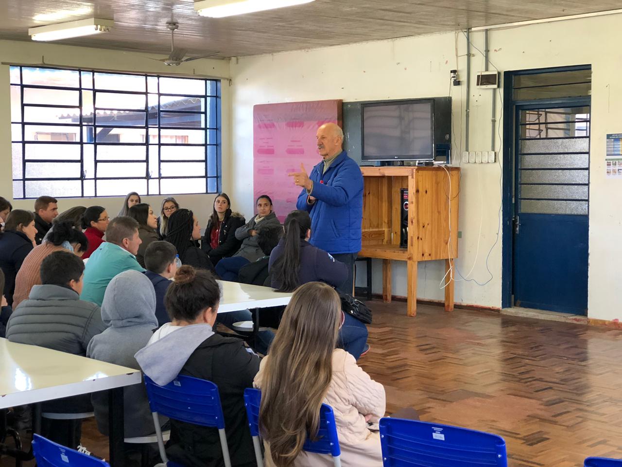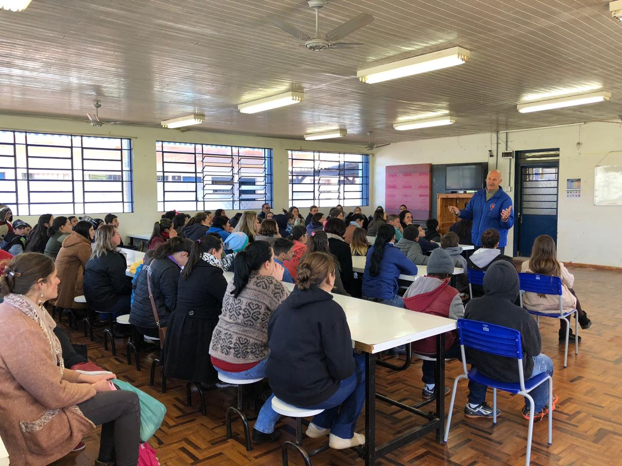 A Secretaria Municipal de Educação reuniu os pais dos estudantes da Escola Municipal de Educação Básica Professor Tadeu Silveira, nesta tarde de quinta-feira (04/07), para uma palestra com o senhor Jaime Perin, sobre a importância da participação dos pais na vida escolar dos filhos.