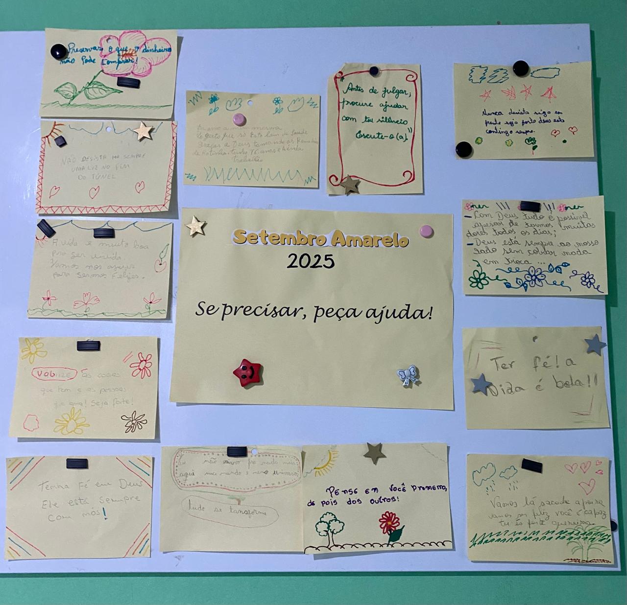 Foi organizada uma roda de conversa sobre o Setembro Amarelo, onde se discutiu a valorização da vida e a importância da saúde mental. Ao final da atividade, cada participante criou uma mensagem ou incentivo positivo para as pessoas que estão passando por sofrimento mental, demonstrando a força e o apoio do grupo.