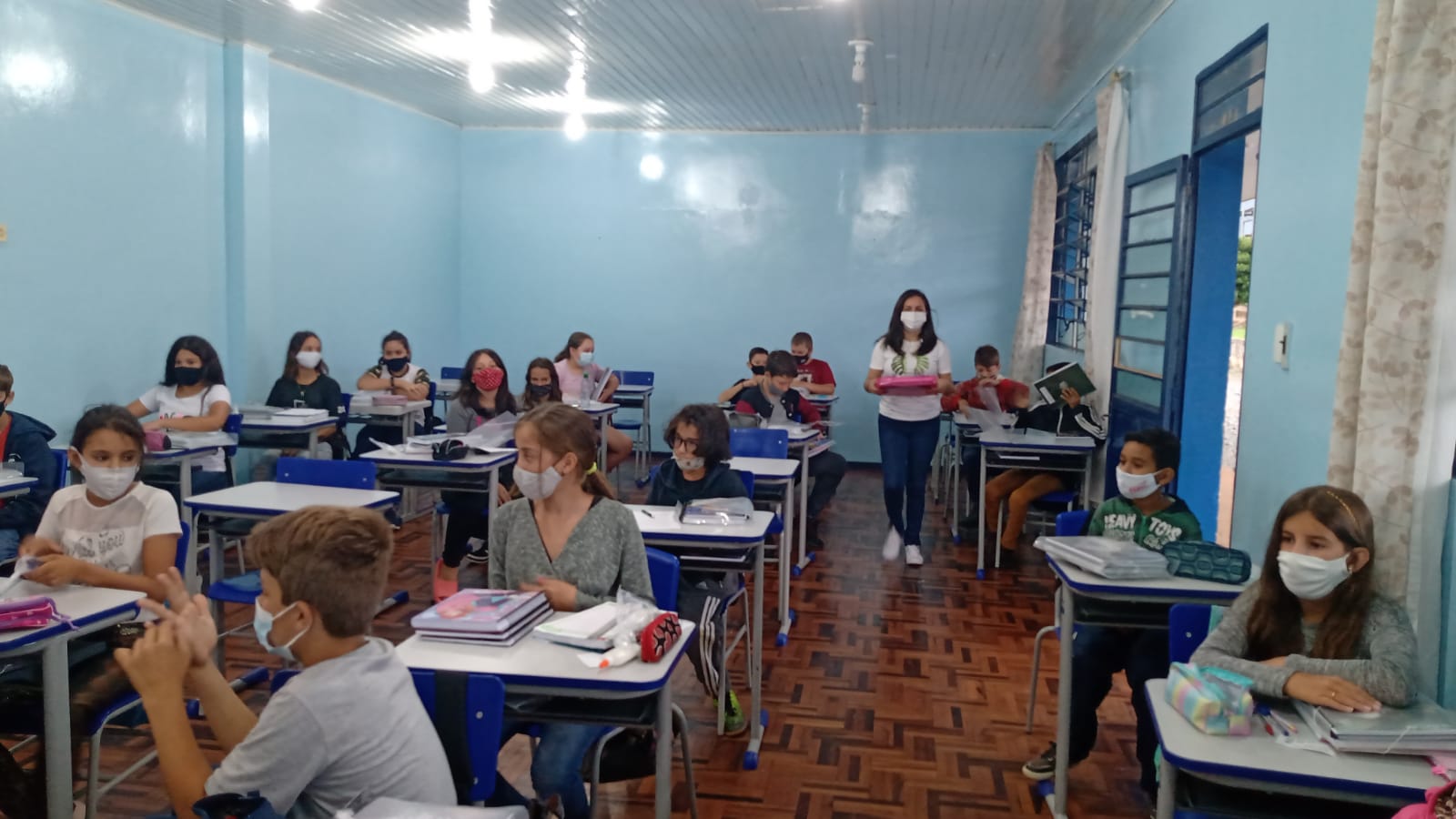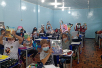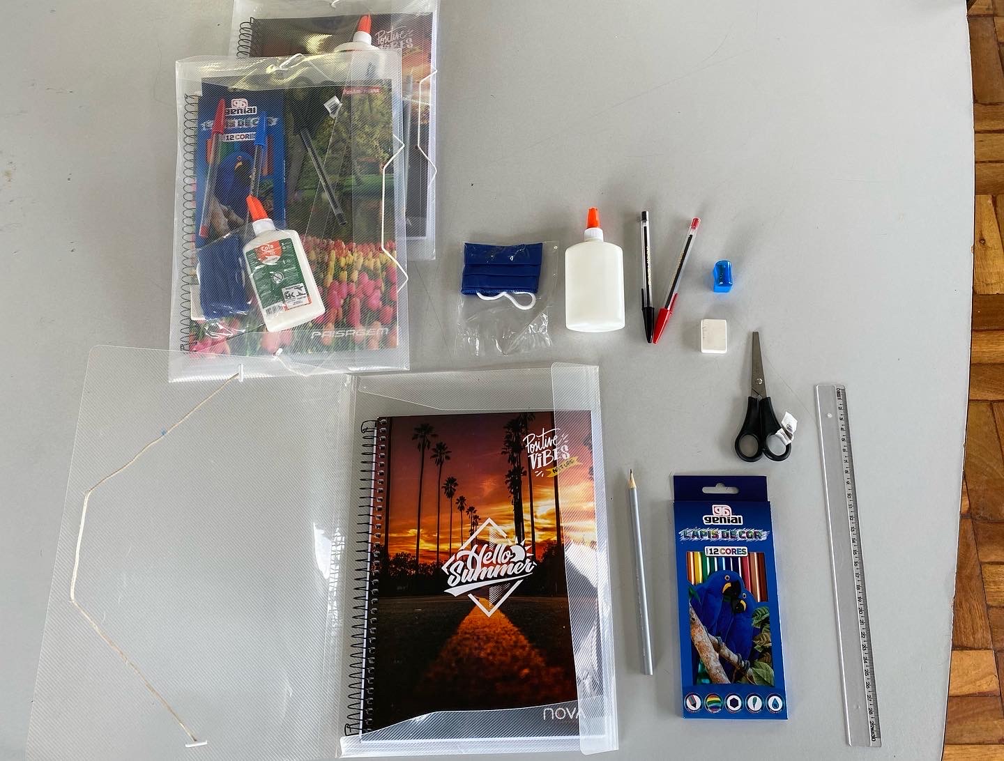 Além da calorosa recepção, os estudantes do ensino fundamental receberam um kit escolar para iniciar os estudos.